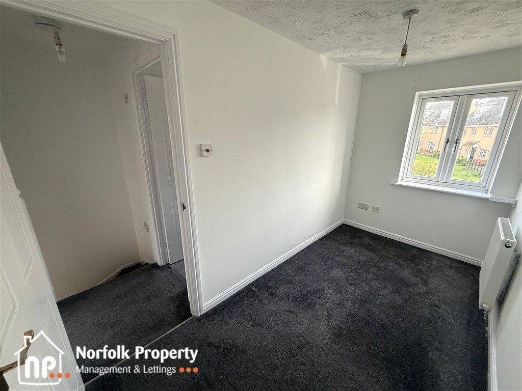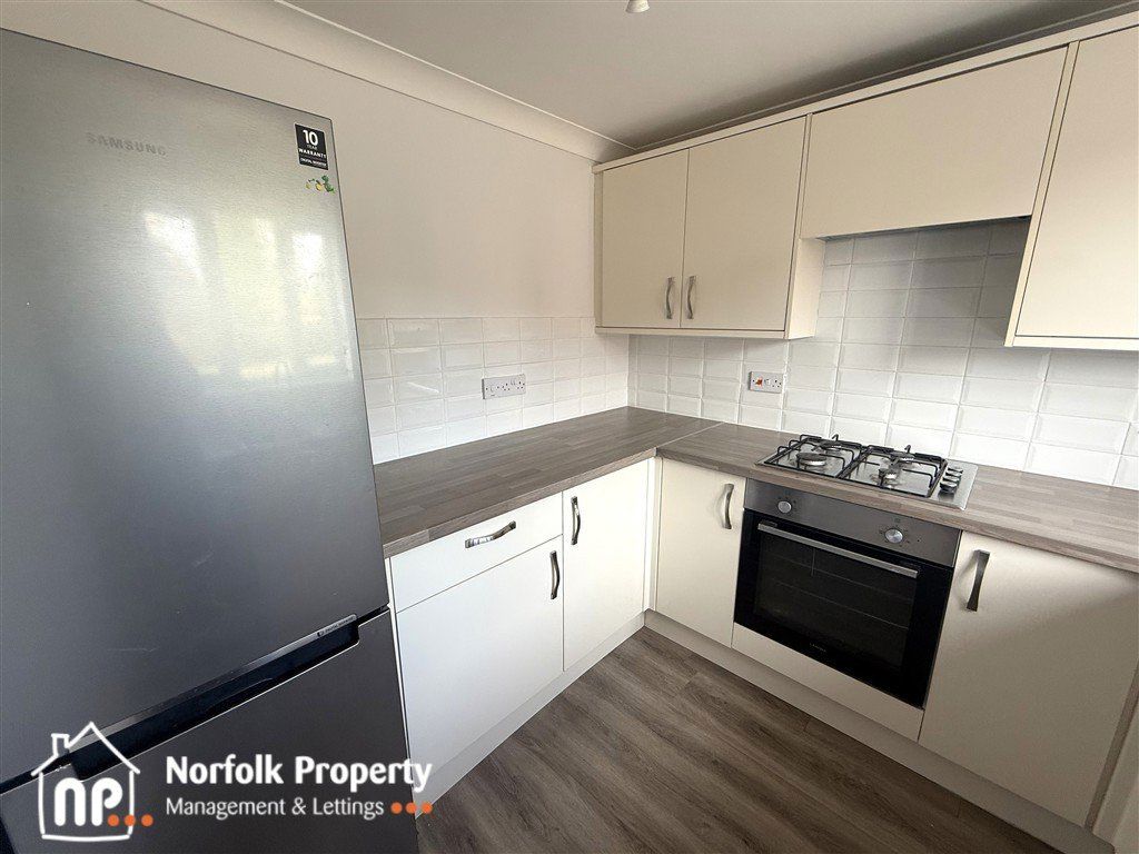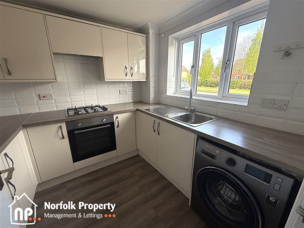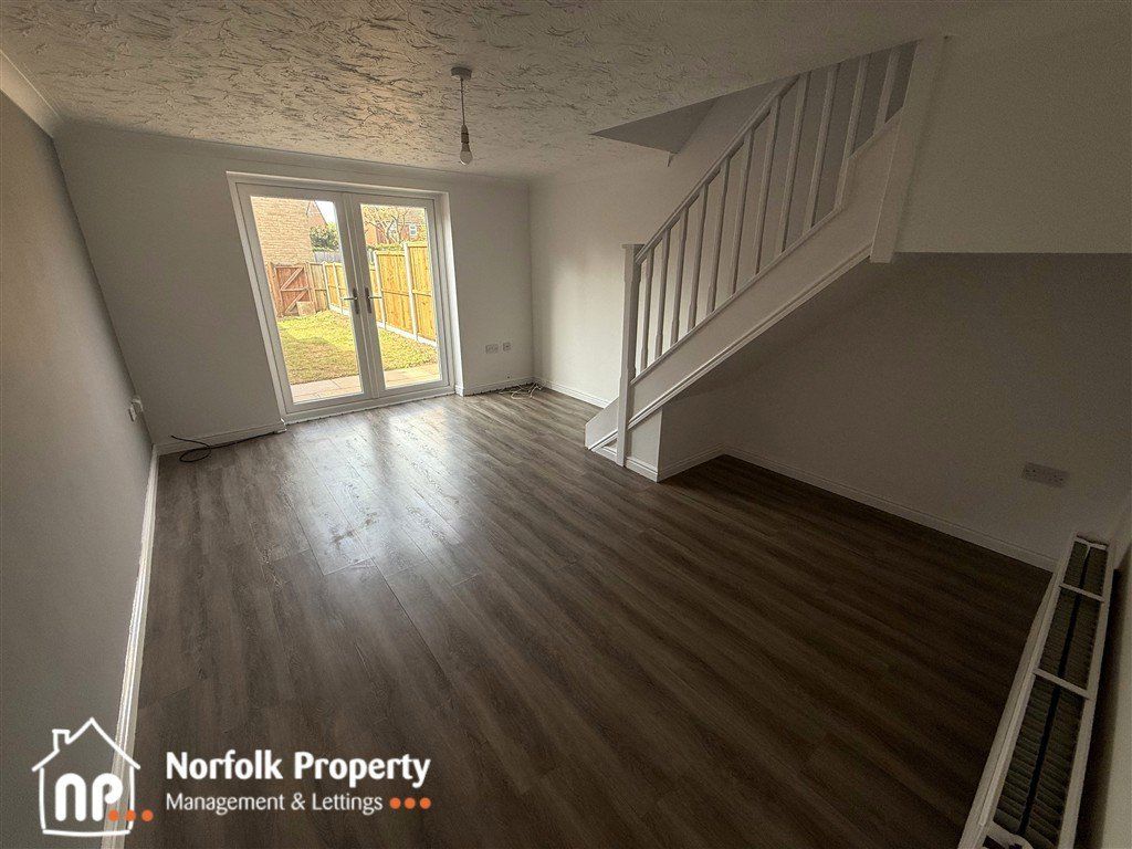 Located on Teasel Road in the popular market town of Attleborough, this newly redecorated two-bedroom terraced home offers bright, modern living throughout. The ground floor welcomes you with an entrance hallway leading to a contemporary kitchen equipped with a fridge freezer and washing machine, alongside a generous living room that features French doors opening onto a private garden with patio area, ideal for relaxing or entertaining. Upstairs, the property offers a well-proportioned main bedroom with fitted wardrobe, a second bedroom, and a stylish bathroom with a shower over the bath. Additional benefits include gas central heating, full double glazing, and two allocated parking spaces to the front of the property, making this an excellent choice for comfortable and convenient living. Council Tax Band B and is offered with a minimum tenancy of twelve months.