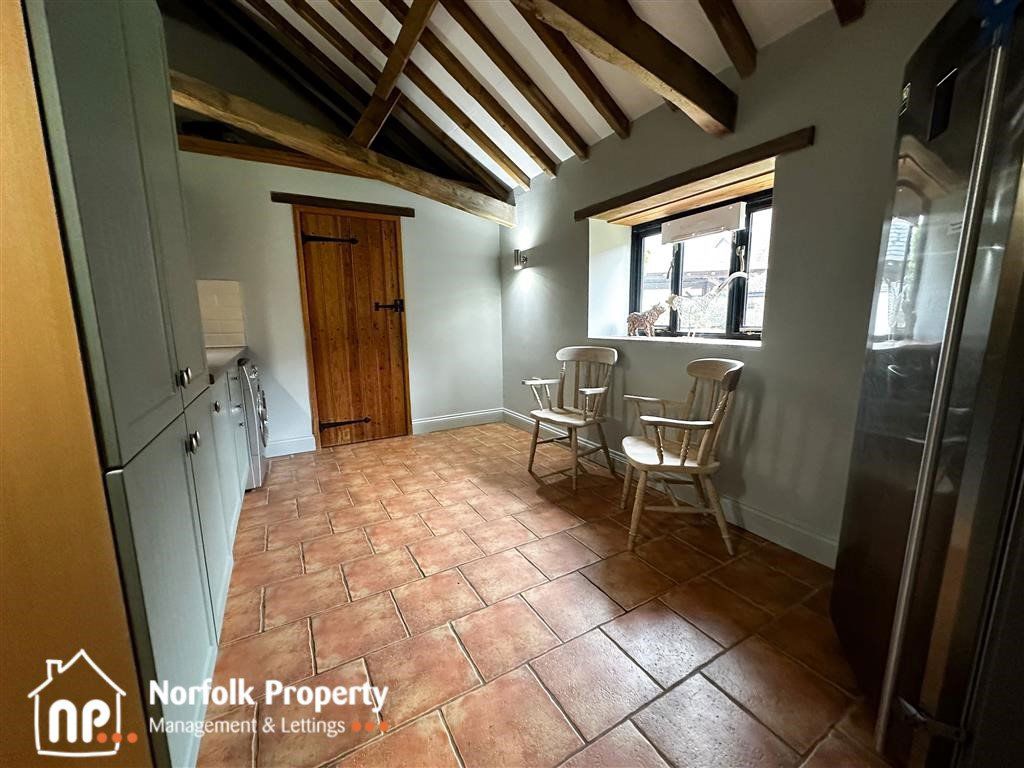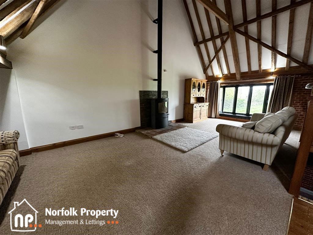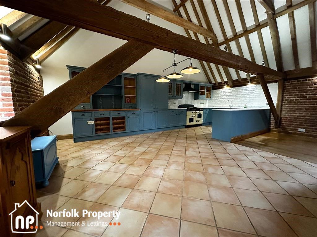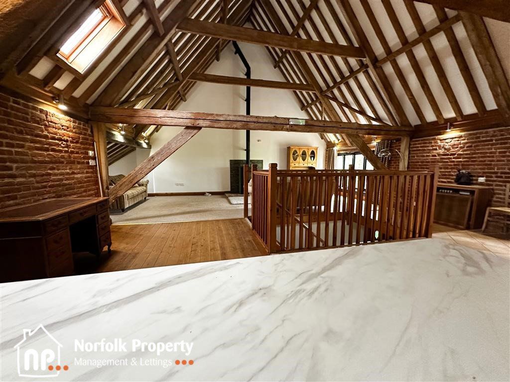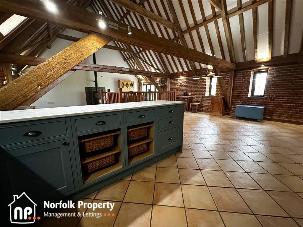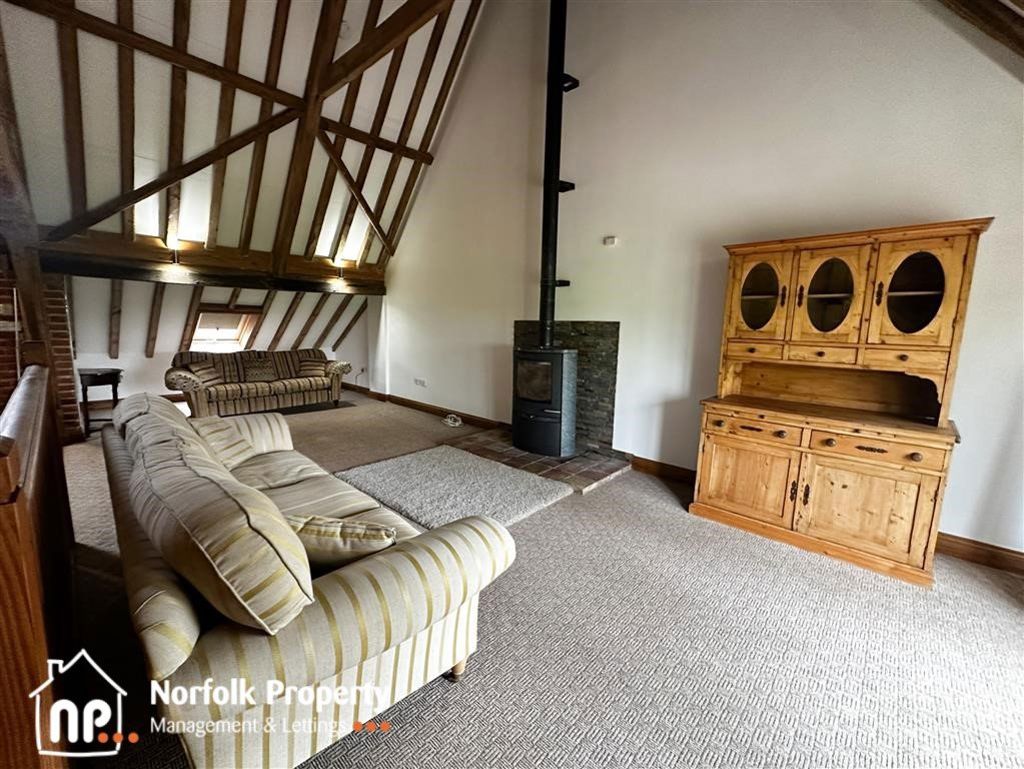 Two bed Barn conversion situated at Lower Wood Farm Mautby. The spacious barn conversion offers open plan living on the first floor with views across open farmland.