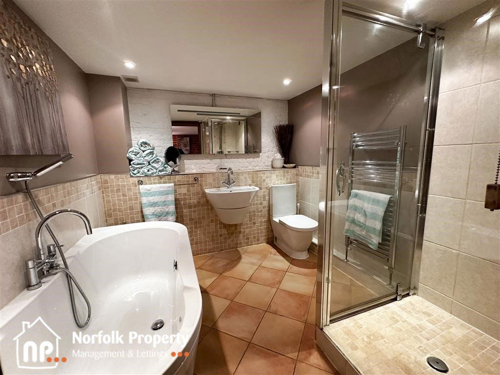 The main kitchen is fully fitted with a double Rangemaster electric oven, integrated dishwasher, integrated Fridge/freezer. Spacious dining area and lounge area with a wood burner. The ground floor has two double bedrooms, Bathroom with a bath, a vanity sink and a WC. The second double bedroom has an ensuite with bath, shower, vanity sink, WC. There is a Ground floor utility/cloakroom WC and undercounter fridge. Work "from home office" is also situated on the ground floor. The property is part of a holiday complex, so all the outside space is shared gardens, which are all maintained. Car Parking for two vehicles. On the circular network of footpaths that pass the farm in three directions. Council tax band C and a 6-month tenancy.